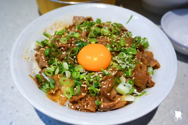 月見御牧牛丼NT.280 也是店家的令一招牌丼飯,全部都是我喜愛的搭配組合, 牛肉片不乾不柴炙燒得恰到好處。 但第一口吃下去,臉都綠了, 照燒淋醬超甜的,以台南人口味偏甜的角度來說, 都還是太甜了吧?一度懷疑這應該是甜點吧, 所選的上好食材,醬卻成了敗筆(哭)