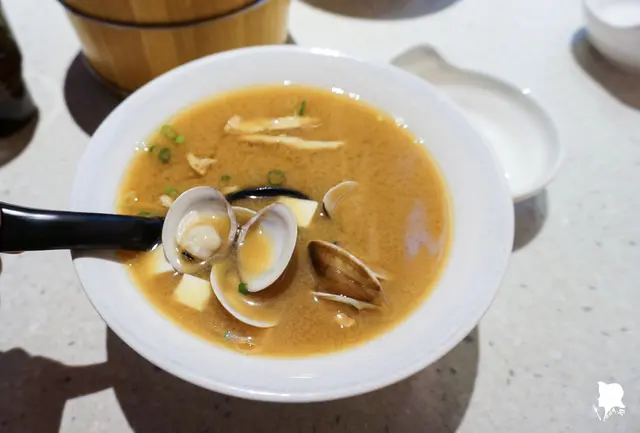 味增湯湯頭濃郁鮮美 ,蛤蠣卻太小顆,失了風采。