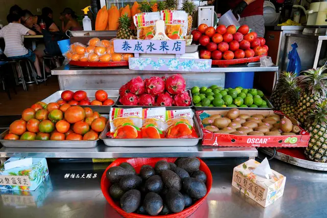 泰成水果店是台南70年老店,雖說是水果店,但除了賣新鮮水果切盤及新鮮果汁外,還有賣哈密瓜冰
