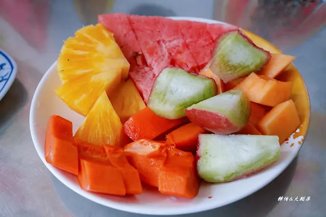 當天搭配的水果有鳳梨、蓮霧、木瓜、哈密瓜及西瓜