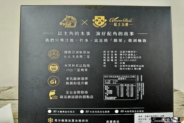 盒上也載明了流金花生巧克力的產品資訊