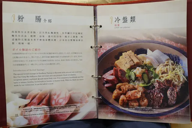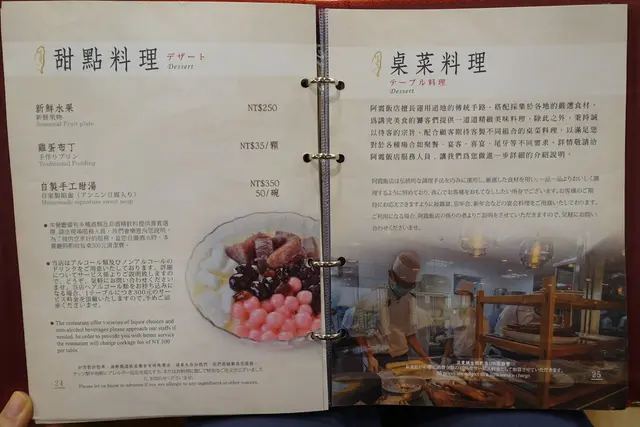 讓我們來看看像是台南特色菜點的介紹的菜單吧,前面都是阿霞飯店特色菜的介紹,後面才是菜單,最後是桌菜,因為是寶寶滿月酒,所以媽媽花兒已經定好桌菜了。