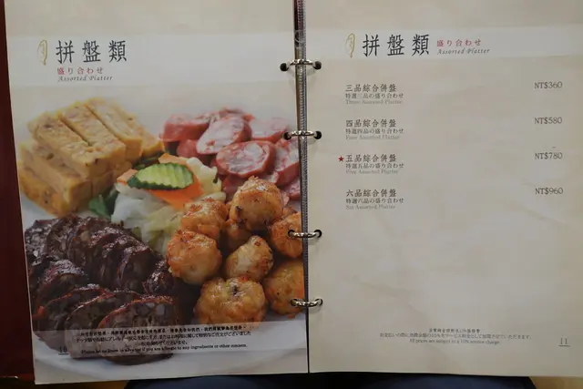 四品手工拼盤有蒸蟳丸、白斬雞、煙燻鴨、粉腸、清燙軟絲還有泡菜,一上菜服務生就介紹蒸蟳丸跟粉腸可以單沾醬油膏或是沾醬油膏加哇沙米,軟絲是沾美乃滋,雞肉跟鴨肉就直接吃,可能是因為台南今天非常的熱,而美姬跟紹興媽今天一整天都在台南戶外亂亂跑,所以覺得中間泡菜清爽、開胃,好好吃啊!