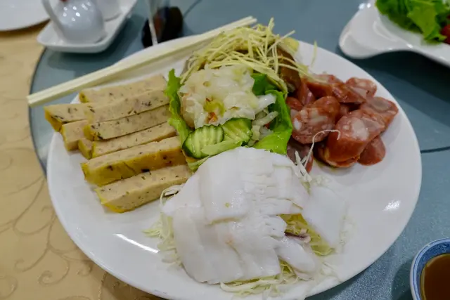 這拼盤中讓美姬印象比較深刻的是蒸蟳丸,因為美姬以為蟳丸是台南黑白切專屬的菜色,之前在台南也吃過幾次,但是蟳丸口感吃起來都是軟軟爛爛的,老實說美姬並不是很愛,但是阿霞飯店的蒸蟳丸吃起來口感有點Q彈,是目前美姬吃過的蟳丸當中最好吃的。
