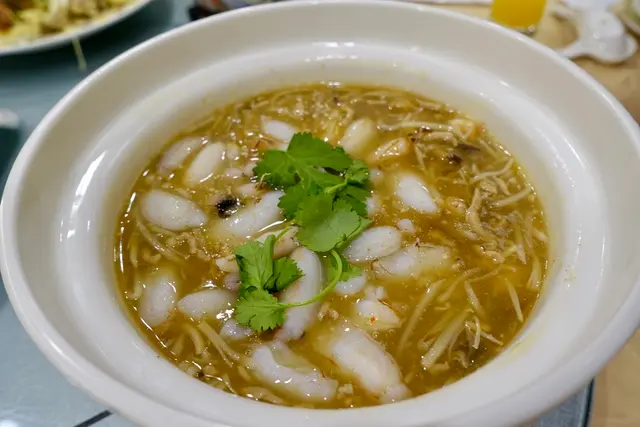 再來是干貝豬肚湯,湯喝起來雖然很濃郁,但是不會油膩,感覺很清爽,這道湯美姬很喜歡,喝了兩碗湯,但是豬肚一口都沒ㄔ~哈哈!