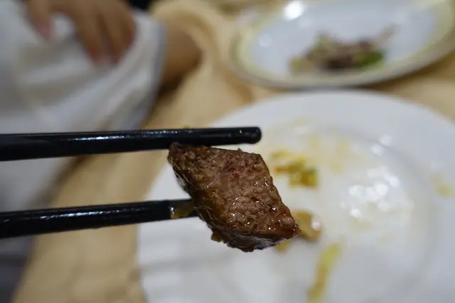 再來是阿霞飯店很出名的隱藏版菜色-南煎肝,在菜單上找不到,但是飯店裡的電視牆一直在播,怎麼可以不點來吃吃看呢?所以這一道菜是另外加點的。美姬不敢吃內臟,不過因為這一道一上菜,整桌就環繞著這個豬肝好好吃、好特別啊!所以美姬有吃了一小塊,很小很小的一塊,還搭配著腰果,這豬肝吃起來口感不會粉粉的,所以口感上美姬覺得還不錯,只是最後冒出來的豬肝味,美姬還是沒辦法接受,所以就只吃了那小小的一口。