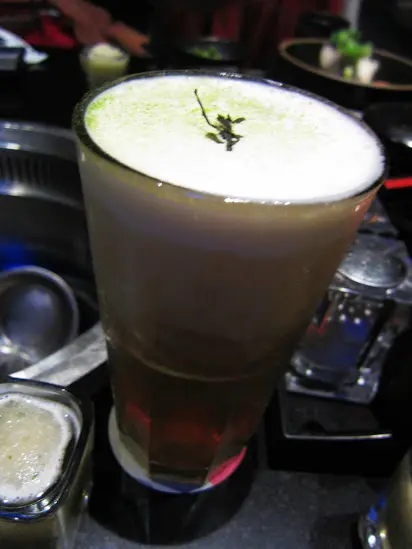 微甜而香氣十足的煎茶搭配上濃郁的奶泡獨具巧思地灑上些許的鹽,