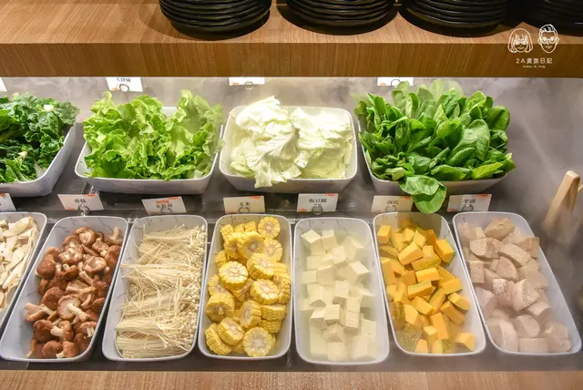 聚日式鍋物台南中華西店的野菜有兩區,讓大家不用擠在同一個地方夾取,細數了一下,檯面上有23種火鍋食材,而且都很新鮮。