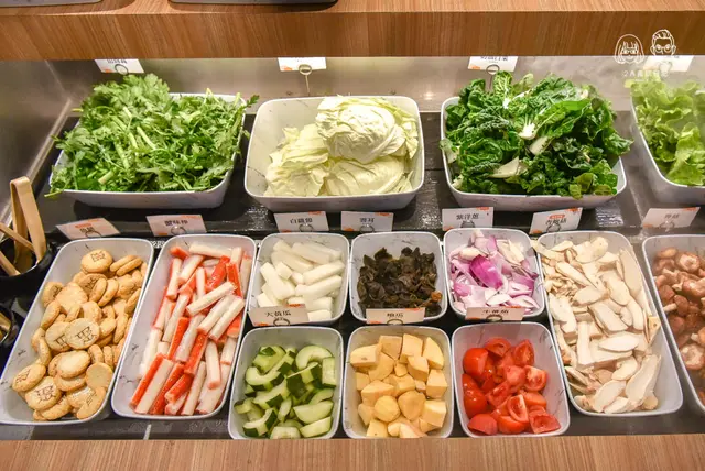 自取的蔬菜都很新鮮,蟳味棒、魚板也比一般的火鍋料好吃~