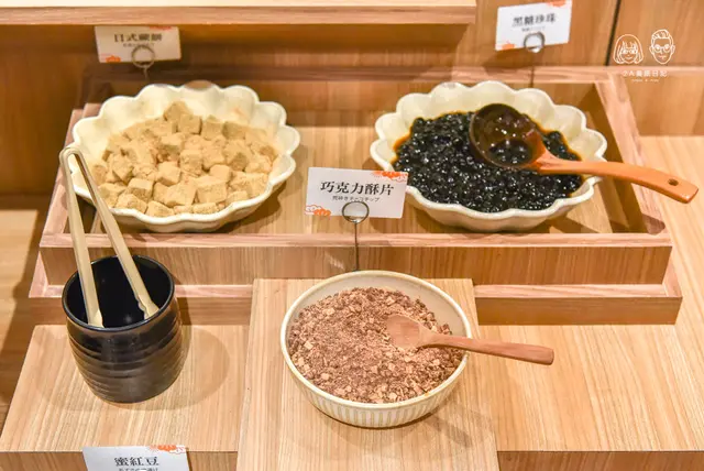 配料提供了日式蕨餅、黑糖珍珠、巧克力酥片、蜜紅豆。
