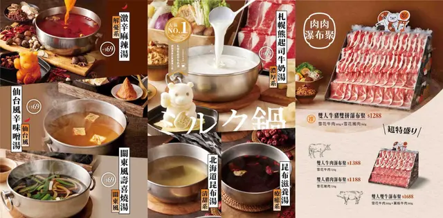 札幌熊起司牛奶湯及激辛麻辣湯都是必點,兩種湯頭都會額外提供一隻可愛的冰磚熊~非常好打卡拍照呢!