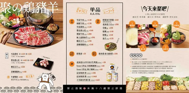 台南火鍋推薦!位在台南安平區的聚日式鍋物台南中華西店,在台中、台北等全台各地都有分店!聚日式鍋物菜單主打道地的日式鍋物湯底,現在幾乎每一間門市已經改成提供半自助式用餐,最低只要$308元,就能享有自助吧的野菜、牛肉壽喜燒、松露野菇奶油炊飯、冰淇淋甜點、日式拉麵、其他地方喝不到的黑豆奶茶等食材吃到飽,加上寬敞且日系風格的環境很適合團體聚餐、慶生過節及慶祝母親節大餐,因為生意真的不錯,所以建議大家提前訂位唷!