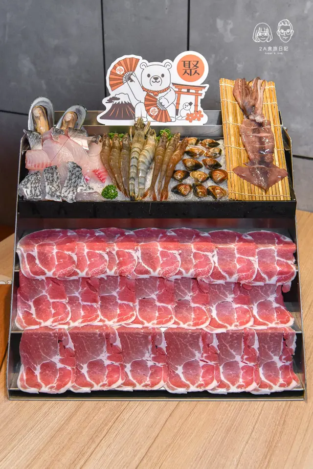 聚日式鍋物的蔬菜放題選擇不少,且食材新鮮、肉品都是原塊肉,湯頭更是真材實料不馬虎,而自製的霜淇淋甜