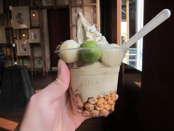 焙茶白玉聖代120元(其實我對抹茶凍那款也很有興趣~)