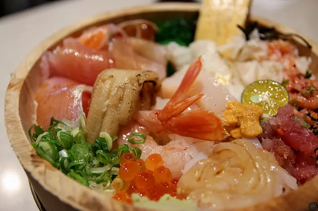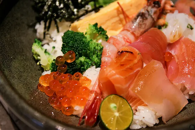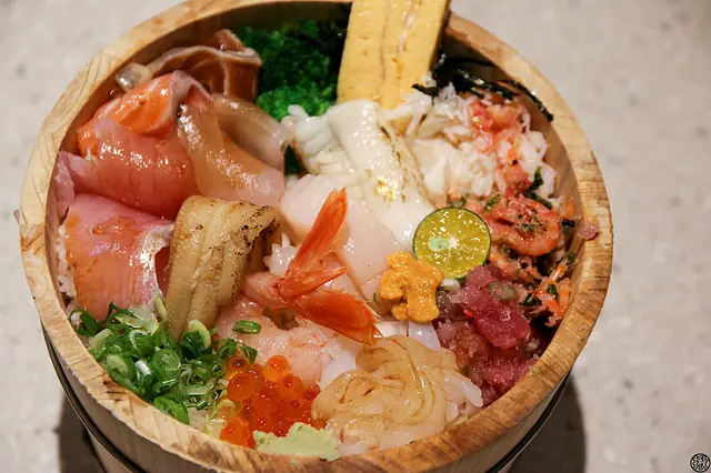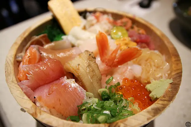 沒有猜錯的話裡面有:海鱺、旗魚、鮭魚、鮪魚、漬鮪魚、鮭魚卵、