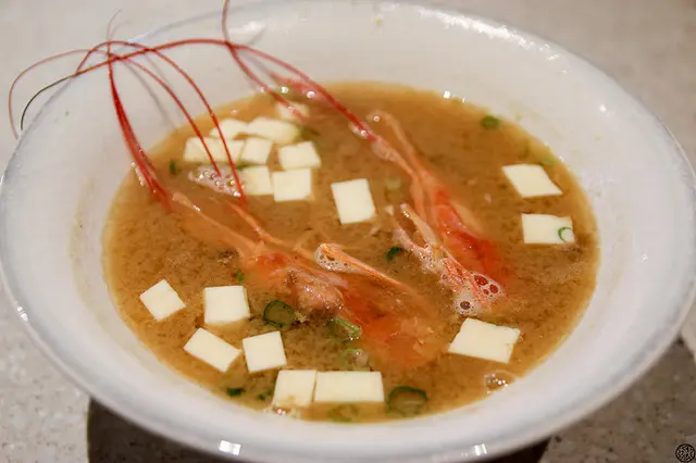用天使紅蝦頭煮味噌湯,但奇妙的是卻喝不出一絲蝦子味,