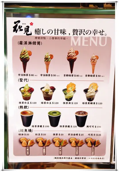 之前在某篇文章中有提到,真正喜愛抹茶的與看到抹茶就瘋狂的是兩種不同的人,阿揪算是遇見抹茶會執著要點的人,硬要說是抹茶控,非也!然而能給花見宇治抹茶甘味処87分不低的分數在於他的抹茶白玉聖代下的甜麥仁有很大的加分、鯛魚燒及一、二樓整體給人的感覺,食物好吃必然重要,但沒有一個相對應的環境也是一籌莫展。