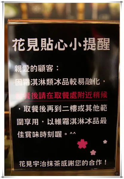 花見宇治抹茶甘味処僅與冰淇淋的一級戰區正興街和國華街相隔幾條街,但卻可以明顯看出人潮的稀疏!正興街和國華街上賣抹茶冰的一間一間開,但生意好的也只有特地幾間,而花見宇治抹茶甘味処選在西門路的另一邊(以民生路做區分)不用與其他店家搶生意,卻要擔心被人潮疏遠(眾人云,吃冰就好廢話還那麼多XD)。
