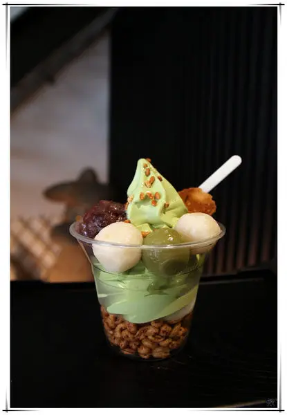解決掉焙茶後繼續挑戰第二隻,抹茶白玉聖代(抹茶凍也挺吸引人的)。
