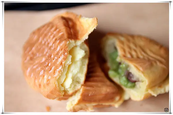 讓阿揪驚訝的是抹茶餡料就跟抹茶冰淇淋一樣帶點苦澀,鯛魚燒的外皮表面微焦酥脆,內皮Q彈相當好吃,紅豆甜度適中不會膩口,表現中上小推一下。
