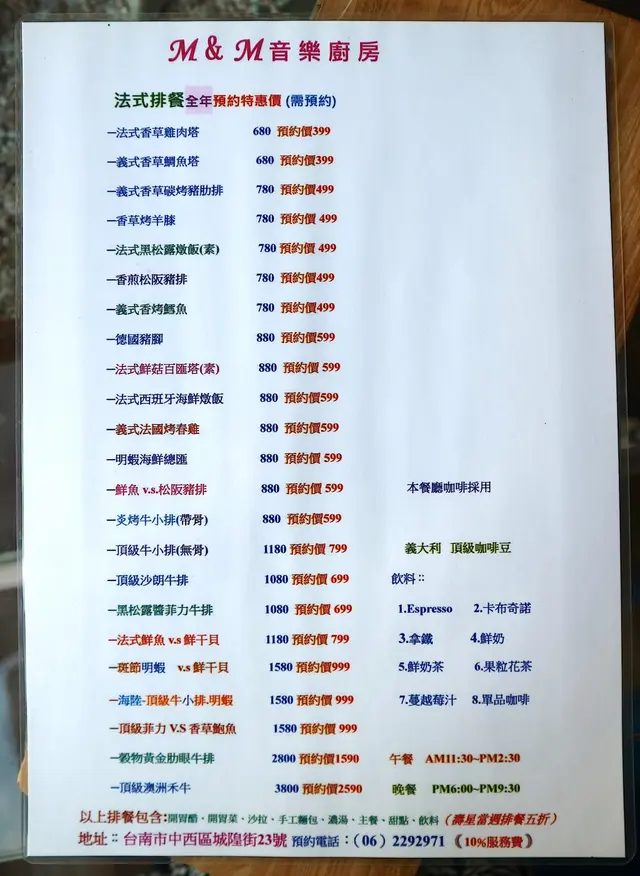 《M&M音樂廚房》是台南知名的百年老屋餐廳,美味的餐點、高級音響設備收藏、真空管設備、古董木雕…等,讓你除了品嘗美食,也能陶冶藝文素養,聆聽那老屋中的樂音飄揚。在這裡~你能優雅地品嚐美味的義法料理,輕鬆地享受一個浪漫的用餐時光。(˶‾᷄ ⁻̫ ‾᷅˵)