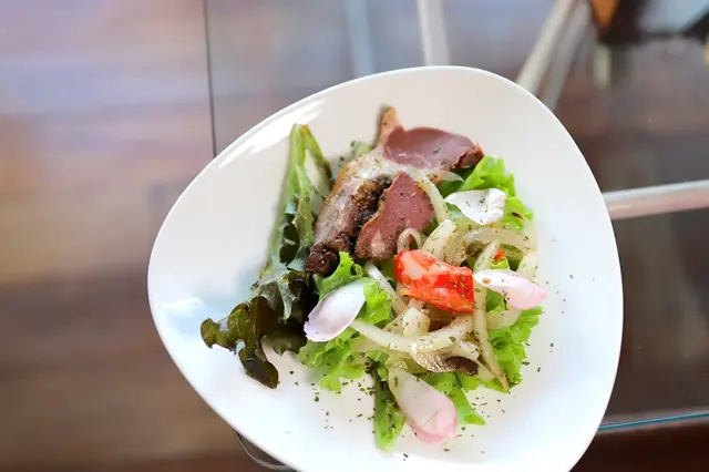 上面有一大片櫻桃鴨胸肉~ 吃起來香嫩