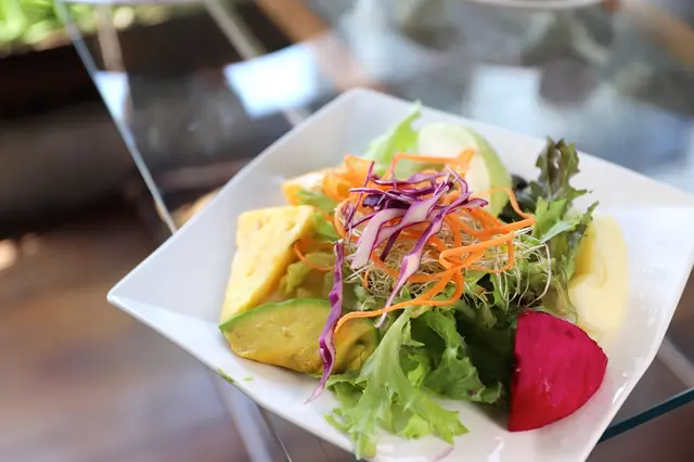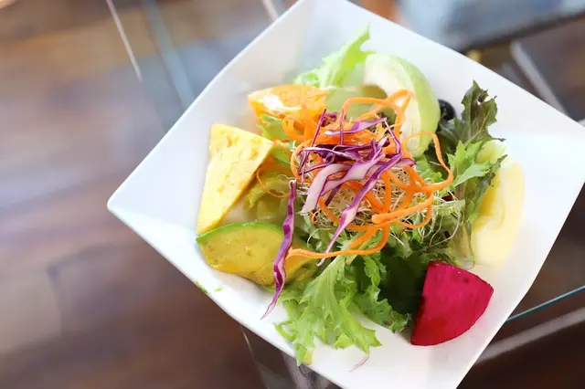 搭配使用的是:美國有機無毒生菜,佐 特調水果醬汁