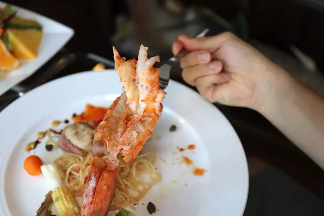 叉子一插,整塊明蝦肉就跟蝦殼分離,