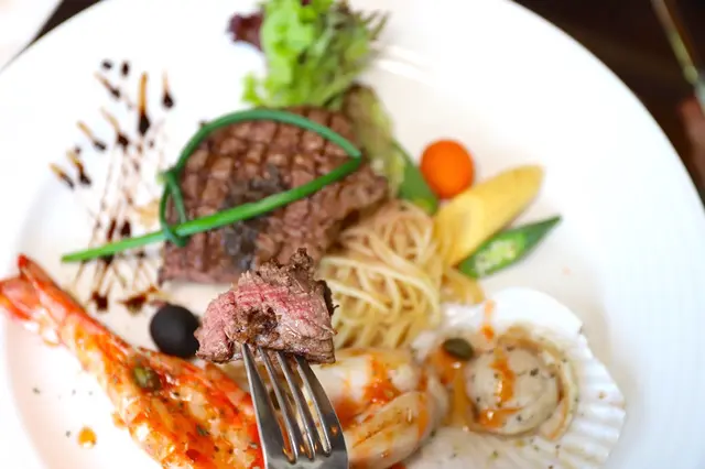 一次就能吃到:黑松露醬菲力+鮮鮑魚+班節明蝦,海陸都有!