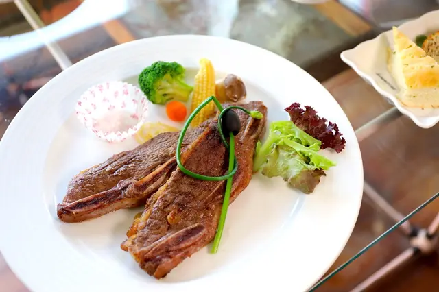 兩大片的 炎烤帶骨牛小排,口感十足,卻不老柴!!!