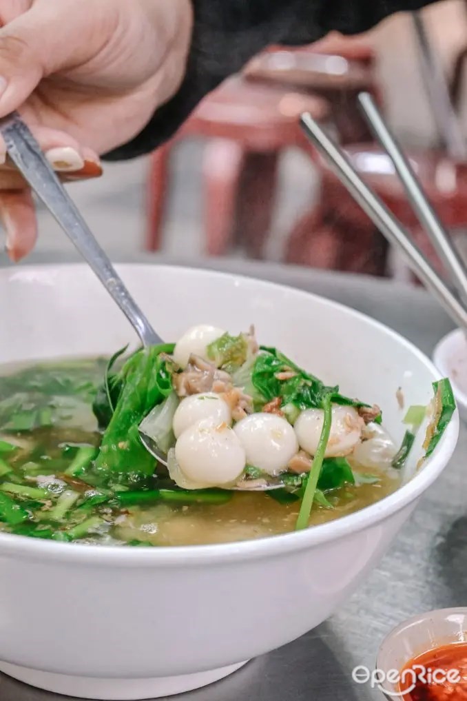已營業40年以上的「榮記客家湯圓」,用料實在且價格實惠,從以前就受到許多在地人的喜愛,招牌必吃的客家湯圓,湯頭添加了油蔥,喝起來清爽又順口,搭配軟呼呼的湯圓,滿滿的鹹香滋味真是大滿足!