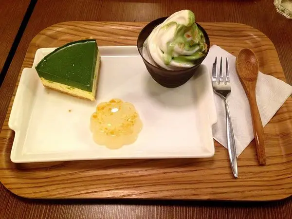 這家是我名單裡想吃很久卻遲遲沒吃的店之一昨天上班跟同事聊到也剛好都有空所以一下班就立馬衝去東門站了 我們到的時候已經快八點半了,店內還是超多人、座無虛席超誇張的幸好我們等五分鐘就有位子了,但是店家九點就要關門,我跟同事們真的是超緊張速速點餐、拍照,而且店員還一直來提醒“九點打烊噢!”真的是想逼死我們 >_<店內環境~ 整家店裡裡外外都超日式,很可愛很有質感1樓空間很小又擠了4張4人座,跟別桌距離太近蠻吵雜的樓下還有B1,沒下去所以不知道大不大 首先先介紹同事N點的抹茶達克瓦茲($230)這裡糕點類的餐點都是冰淇淋+糕點+小點心冰淇淋可以選抹茶or香草or綜合,小點心是店家搭配好的達克瓦茲的小點心是一小塊抹茶年輪+紅豆泥,同事覺得普普但主角達克瓦茲真的很好吃! 同事N一直對上下兩層餅皮讚不絕口!我有吃了一口不是很酥脆的外皮但是也是好吃的裡面白色綠色圓圓的吃起來很像奶油球之類的東西很特別還有紅豆在裡面,這幾個好吃的食材搭起來真的是太犯規了綜合冰淇淋有加瓜子片,蠻特別的!90分!!! 接下來是同事A吃的抹茶起司蛋糕($230)送上來的時候我有傻眼一下也太小了吧~~~~~~~~大概跟我手掌差不多大吧...蛋糕很明顯的分成 抹茶>起司>餅乾,看起來超可愛的!!我吃了一口,超好吃~~抹茶跟起司的味道是分開的喔,先吃到抹茶微苦的茶味在緊接著濃濃的起司味抹茶起司的小點心是柚子洋菜凍,雖然沒吃,不過感覺可以解解起司的膩90分!!! 最後是我點的抹茶千層蛋糕($230),這蛋糕實在是讓我心情起起落落的...第一口吃下去的時候,蛋糕在嘴巴裡123456...總之超多層,每層中間夾著微苦的抹茶奶油,好吃!!同事們的冰都是點綜合,只有我點抹茶很堅持要一路抹茶到底 哈哈 我的小點心是抹茶泡芙,超爆漿!!!泡芙皮不是很脆,但也不差還蠻好吃的最後重點來了!!!!!!!抹茶千層+抹茶冰淇淋+抹茶泡芙的結果就是超膩...三種東西真的完完全全只有抹茶,沒有紅豆、奶油球之類的搭配吃到最後我竟然太膩吃不下了,超難過T_T80分...這家店生意真的好得很誇張,一直到打烊都還是客滿的,不過店員九點一到就馬上趕人了><抹茶產品真的很濃郁、很好吃,而且沒加服務費真的是揪甘心欸~~~~不過這次是星期四去,所以沒吃到我覬覦很久的抹茶千層派光看照片就快受不了了>~~~~<下次再挑個五六日去吧 和茗甘味處地址:台北市大安區金華街221號1樓電話:02 23518802營業時間:(Mon~Fri)13:00–21:00 (Sat~Sun)13:00–22:00…查看更多