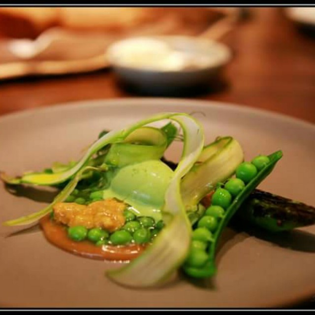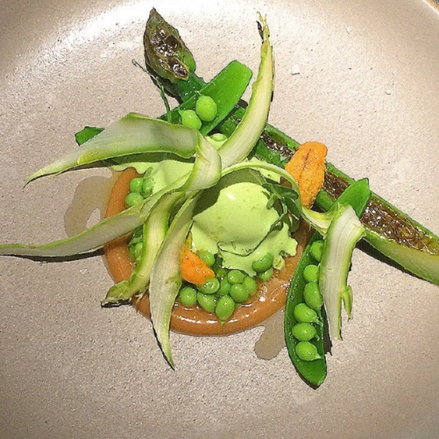 海膽、碗豆、蘆筍搭配豆泥冰淇淋&花生奶油