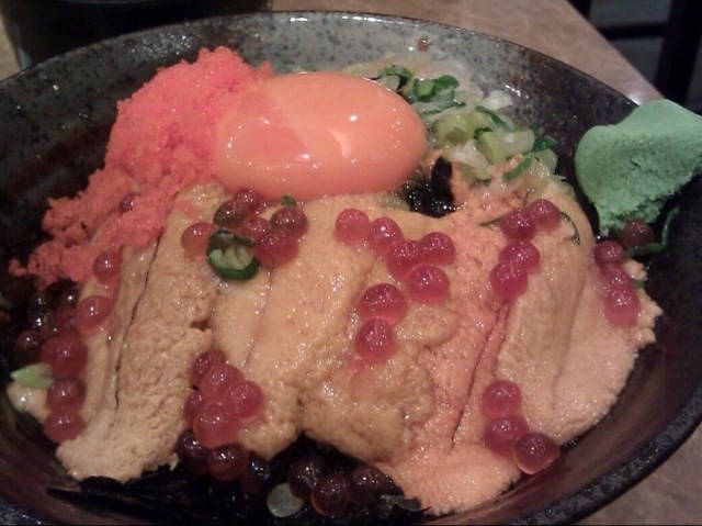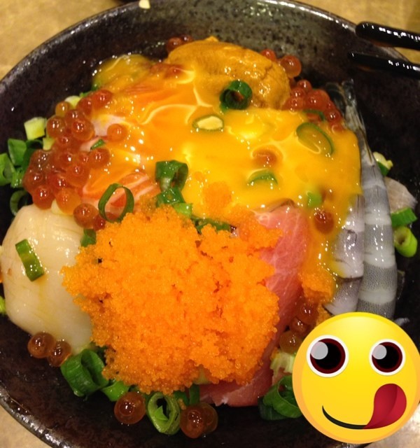 心血來潮來去內湖吃「金泰日式料理」,抵達時已經是下午兩點,果然是排隊名店! 就算過了正餐,來到下午茶的時間,店門口仍有長長的人龍~排隊的過程中店員會先拿菜單給人客參考,比較不浪費時間! (忘了照菜單...好餓...)我們大約等了半小時才進到店內。(建議避開正餐時段~)若不介意坐外面或是壽司台,應該可以省下很多等待時間~店內應該重新裝潢不久,乾淨整齊,人潮絡繹不絕!這邊的餐具及茶飲都是自取的喔!原來蓋飯是要降子吃的 (筆記ing)店員首先送上味增湯...這可以說是我目前喝過最「彭派」又好喝的附贈味增湯!!!瞧瞧那魚肉有多大塊!!!! 而且應該有3塊以上!!!!!!每口湯都有滿滿的料~味道應該有改良過,不會太鹹,對女生來說喝個一碗就已經半飽了主角上桌了!!!「海鮮蓋飯」(推薦第一次來的人點) $420有大蝦、海膽(不會腥喔!不敢吃海膽的我打包票的說!)、鮪魚旗魚鮭魚生魚片、明太子、魚卵以及雞蛋每一口吃的時候搭配一點點點點的芥末,微微的嗆卻又夠味,讚!!!!「生魚片蓋飯」 $220鮪魚旗魚鮭魚+魚卵蝦卵雞蛋滿滿的料...吃到很感動~不要看它好像不大,喝完一碗湯後,這碗蓋飯可是把我的胃撐到極致....整體來說,「金泰蓋飯」雖然價格不算太親民,但是絕對值得去一趟的!!!…查看更多