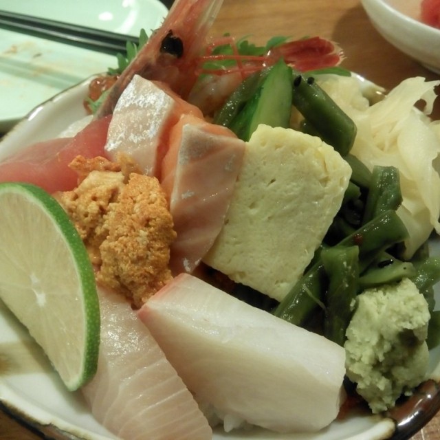 小六食堂應該是最近我跟朋友想吃新鮮平價生魚片的最佳首選了,每每又突然嘴饞,登高一呼後下班就馬上就衝到店門口候位報到了,今天到現場排隊的時間約5點50分,前頭已經有一排人龍在等待了@O@不愧是口耳相傳的平價名店,很幸運地六點一到,我們也有算入第一批用餐的客群中,六點進場可以用餐到7點半,時間還算充裕。到小六用餐已經不下五六次,都常我都會點特製海鮮丼當作主餐,這次決定要再試試其他美味,主要也是因為每次看別桌客人點的東西都好好吃喔!這一次我們點了特製海鮮散壽司、燒霜鮭魚丼、明太子炙鮭魚以及明太子起士豆腐~不禁要說小六的食材真的新鮮又有誠意,一碗一百出頭的燒霜鮭魚丼上面佈滿了厚厚的炙燒鮭魚肉,咬下去的那瞬間,魚肉就化在口腔中了,真是超級厲害的!另外一碗朋友的特上海鮮散壽司,光是看到海膽跟滿佈的鮭魚卵以及那鮭魚的油脂,就知道這個豐富程度有多精采了!接下來的這一道明太子炙鮭魚,如果說剛才的燒霜鮭魚丼是現今火紅的排隊商品IPHONE6的話,炙鮭魚就可以說是I6PLUS了!在明太子醬與洋蔥的提味下,不亂蓋,這鮭魚真的是入口即化阿,美味到我朋友都在fb上蓋上好吃印了,大家千萬不要錯過這道超絕極樂至福好味啊!!!!如果不敢吃生魚的朋友,小六食堂也有熟食丼可供選擇,或者你也可以吃看看這項一品料理明太子起士豆腐,這份料理的分量原本是三塊豆腐,因為同行有4人,所以我們有再加量。明太子醬的味道吃起來與剛才的明太子炙鮭魚味道相似,但是多了起士的風味在裡面,把平凡的豆腐料理變身成這樣的絕品美味,雖然每每完時候總會為又吃進這麼高熱量的食物感到懊悔,但是美食當前,怎叫人不心動呢XD…查看更多