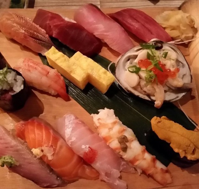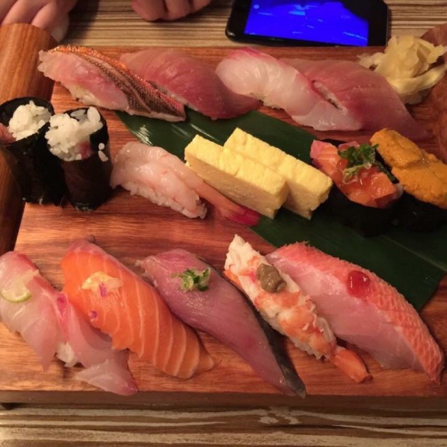 當天到「上引水產」立吞吧是中午,等了差不多一小時就入座。(已經是沒有等很久了)可能是放暑假關係,現場有不少遊客,看來是以香港人最多。沒想到這裡也會變成觀光景點。聽隔壁的水果市場老闆說,最近多了香港遊客去逛、買水果。相信多少與「上引水產」吸引遊客嚐鮮之餘,順便去看看當季水果吧。立吞巴重點是要站著吃,而且價位不便宜,既然不是吃到飽,就只能淺嚐輒止吧! 我們三人點了:[特選握壽司],有附味噌湯,[立舟壽司套餐],包含鮪魚手捲、握壽司、沙拉、鹽燒秋刀魚、附味噌湯。[貝類生魚片](帆立貝、赤貝)等。所有餐點的美味度,我們都非常讚賞,特別是[貝類生魚片],上桌的時候彷彿看得見它們有怦怦心跳的,味噌湯很好喝,蝦頭、鮭魚骨熬成,料實在又鮮甜。老實說,「上引水產」的食材都絕對新鮮,但壽司師父就不一定是鼎級的,功力很參差。最後我們當然是吃不飽,所以快閃去別家續攤啦。立吞巴外面是超市,有很多香港遊客在逛,我也愛過來採買,多數買一整包滷蛋、蔬菜、壽司及生魚片(這裡大概下午6點以後會打折)。這裡的壽司、海鮮、蔬菜品質都很好,同樣品質比較,價格比其他商店便宜。有一區是買活跳跳海鮮,這裡沒有傳統市的味道或水答答。其實這裡還有2間餐廳,除立吞巴之外,還有BBQ區及2樓的鍋物區 。到「上引水產」如果開車還OK,不然就是到最近的捷運站(民權西路站)再換計程車,約$ 120。…查看更多