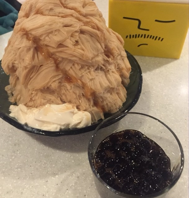 今天又來Ice Monster了,它是我近期很愛的冰品店。因為人氣爆燈,門外長長人龍都會讓人卻步。不過,聰明人自有妙法,就是要錯開午飯、晚飯的巔瘋時間。因為用餐完畢找甜點吃是天經地義的大事,特別是Ice Monster位處東區,這裡有各國美食餐廳,是老饕集中地,所以千萬不要這個時段來喔,不然要等候30分鐘到1小時是平常事。Ice Monster原是永康冰館的創始店,最近被CNN評選為全世界十大好吃的甜品,來自各國的遊客自然不少,當天目測以日本&香港人最多。最近幾次去,發現店內掛滿很多「深夜食堂」的文宣,原來第十一冊裡有介紹煉乳冰喔,有帶書來買有打折喔。我們三人吃了酸菜白肉鍋,大概晚上8點左右到,稍為排了一下下隊就準備入座了。 內用有低消,一個人是$120,各點了一份甜點:新鮮芒果棉花甜$ 220(冬天價格不同$250)、珍珠奶茶棉花甜$ 180、芝麻糊$ 160 。「新鮮芒果棉花甜」是這裡的招牌冰品,雖然店家強調全年都有供應,今天的芒果肉是微酸,與我7月來時吃到的香甜,真的不可同日而語。所以經驗告訴我要不時不食,要把握時機吃當季水果。一整盤堆得高高的芒果冰送來,通常都會引來讚嘆連連。由芒果汁打成的棉棉冰 、芒果冰淇淋、滑嘟嘟的奶酪,再淋上芒果汁及芒果塊。一整盤吸睛不已,心情立即好起來!「 珍珠奶茶棉花甜」是我的最愛、非常用力推薦給未聽過或吃過的朋友們。它的精采處在於此冰的趣味性,珍珠奶茶是台灣人發明,曾經紅極一時,滿街都是不同店名的加盟店,是行銷到國外的特色飲料。今天Ice Monster延續了它的風采,要拍拍手讚一下。基底是奶茶味道濃郁的棉棉冰,伴以奶白的奶酪,加一小杯熱熱的珍珠粉圓。粉圓我敢說是台北數一數二好吃的,QQ度沒法抗拒,其實一小杯、加糖漿一起吃是會甜死人的,建議點一盤與朋友分享,粉圓是愛吃多少加多少。芝麻糊的單價$ 160 ,是莫名的貴!這樣高價位的芝麻糊我會特別挑剔,還好它的味道很濃厚,質感順滑、濃稠有緻,有時還會咬到它的小粒粒,秋冬乾燥要多吃一點,不單可補血﹑潤腸﹑養顏美容﹑改善虛弱身體及預防老化等效用,也有使白髮變黑的功效。這裡有一個不親和的規定,就是要先入門到櫃檯點餐、付賬,才可入座,即使要求一個人先點餐,其餘入座都不成,這樣感覺是不是有一點本末倒置呢?要客人匆忙點餐、買單,為何不能舒舒服服坐著看菜單、選甜品呢?時屆秋冬,又有新的甜品上市了,去年吃過地瓜湯、蔴糬(地瓜薑薑好、客家蔴糬)都非常美味,國外友人都讚不絕口。地瓜湯、蔴糬等季節甜品是有時限的,要趕快把握時間去品嚐喔。店內有仿老闆羅先生的頭像做成可愛的Icon,從名片、餐巾紙、餐巾盒都是,當天碰巧看到老闆在外場,與Icon有90%神似,讓人發出會心微笑喔!交通:捷運國父紀念館站1號出口,大概3分鐘內可達 …查看更多