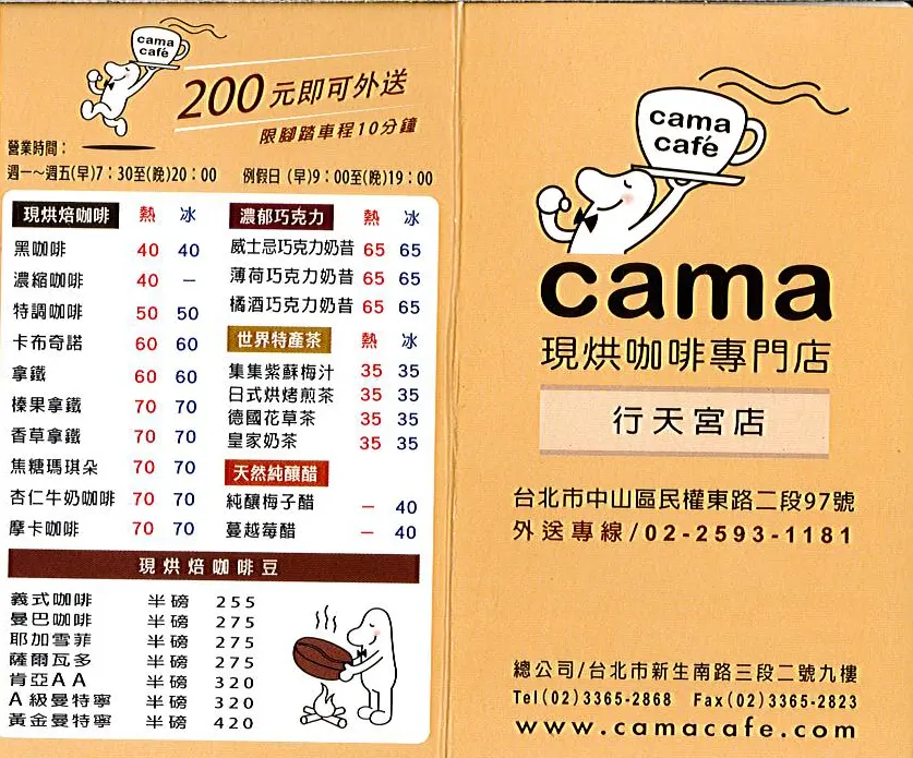 地址: cama現烘咖啡專門店 台北行天宮店
