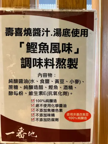○地址:台北市中正區開封街一段48號○電話:02-2388-8852○營業時間:11:00-22:00(一~四、日)│11:00-23:00(五六) ○交通方式:捷運「台北車站」「西門站」步行約10分鐘 一番地壽喜燒,「頂級牛肉的好滋味!」首先要先自首,吃這家一番地壽喜燒時小編好像忘了吃藥,回家整理照片才發現東缺西缺,一個沒帶腦出門的概念,請大家多多包涵。這次跟久久不見的朋友約好要吃壽喜燒,選中了這個號稱台北最好吃的壽喜燒,超愛吃壽喜燒的小編當然要好好地來品嘗看看是不是真的這麼厲害。 一番地的位子有分成兩人的小桌以及四人以上的大桌,一上桌店員會先準備好有洋蔥為底的醬油湯頭,以及最基本的菜盤,另外還有一人一份的泡菜以及生菜沙拉,泡菜很好吃,沙拉沒有太多記憶點。另外介紹一下,一番地的收費是平日午餐398元/1人、假日全天及平日晚餐是468元/1人,價格須收一成的服務費,因此當天吃下來一個人大概是510元左右。 飲料部分除了最基本的可樂機以外還有特調的蜂蜜檸檬水以及夏威夷果汁,另外還有熱飲的部分。不過飲料喝起來全部都有點偏太甜,可能都要加點水才行。 這家一番地號稱是使用美國Prime極佳級、Choice特選級的牛肉,雖然不是很懂是什麼意思,不過好像很厲害的樣子,所以小編跟朋友們就從頭到尾大點牛肉啦! 罪該萬死的小編真的不知道在拍什麼照片啦!上圖兩張就是拍起來很普通但吃起來很好吃的牛肉!!牛肉這玩意兒真的很適合用壽喜燒來料理,涮到七分熟在配上一點蛋液,軟嫩的口感又有牛肉鮮味,超好吃的! 小編吃壽喜燒的習慣,一定要配上白飯。雖然煮肉的湯頭超級鹹都是醬油,但順著牛肉夾起沾上一點點醬汁,白飯也特別好吃呢!另外沾蛋黃來吃就因人而異,有些人不太敢配上生蛋吃的口感,不過小編吃得津津有味。 偶爾會來菜車問是否需要加青菜,小編吃壽喜燒最喜歡的就是杏鮑菇、金針菇,不過這家一番地有一個蔬菜也蠻棒的,那就是絲瓜啦!絲瓜下鍋煮到軟嫩又吸附一點湯汁,好吃好吃! 吃完後店家就會立刻送上冰淇淋,冰淇淋很普通,有點偏酸。話說小編在網路上看到不少評論認為這家店時間抓超緊,東西都還沒吃完就上冰淇淋。小編當天去用餐的狀況是有比別家店稍趕一點,提醒用餐時間快到後,很快就上完甜點了,不過應該是因為我們自己也沒在看時間吧?當天覺得還好沒有被趕的感覺。 朋友超推的甜點,檸檬片配上砂糖!兩個味道的極端搭在一起吃,還真的能蹦出意想不到的新滋味。如同朋友說的,真的很特別也很好吃,平常不敢單吃檸檬片的朋友也可以這樣試一試! 最後也很快地沒帶腦的結帳出去了,後來想一想到底為什麼當天都不知道自己在幹嘛,還拍了一堆莫名其妙的照片,又少拍一堆照片呢?原來是因為前一天跑去打通宵麻將還沒醒啊!不過這家一番地真的算蠻好吃的,沒帶腦的狀態下也記得自己吃了好幾盤的超多汁的美味牛肉,跟小編吃過其他的壽喜燒比起來應該可以排上第二名,第一名留給大家想像!!推薦給大家,下次小編去吃任何餐廳都會記得帶腦der!!!查看更多