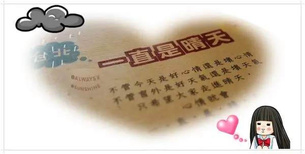 102/10/14台北‧一直是晴天一看店名即深受吸引突然有感而發~我們無法控制天氣,但心情是可以自我調適的,期許著每一天心一直是晴天此行五月花缺一,離史努比上班有點距離心是與我們同在的 鄉村雜貨風清新又可愛女人呀!管它公主風.鄉村風.貴婦風.和風.歐風.韓風...只要是有吸引到的點,全都瘋整牆面的卡哇伊雜貨,超殺記憶卡路過店門口,無不被這小花園天地給吸引窗裡窗外都有一幅好風景 店狗,阿魯的家訂桌牌是可愛店狗寫真手作MENU封面每一本都有不同的外衣平日商午MENU,250-280元整份簡餐上桌,視覺滿分更添食慾煎烤牛小排飯280元看似份量不多卻也吃得十分飽足牛小排熟度剛好,肉質還不錯配有小菜.沙拉.枸杞牛蒡湯泰式雞塊飯250元每人都分享主餐共嚐,炸雞塊好大一塊外酥內嫩真好吃檸香雞腿飯250元雞腿淋上像是椒麻口味的醬汁,好下飯日式燒肉飯250元飲料,果汁是現榨的唷!店狗阿魯好乖,一向超怕寵物的我也敢接近齊媽與我最愛到處踩點尋樂趣紅美人.Alice十指緊扣,扮起堅情,哈)))天晴心也晴我們在此拍得好忘情生命中有這樣有共鳴的朋友實在難得結束午餐約會,我們續往松菸前行...…Read More