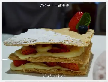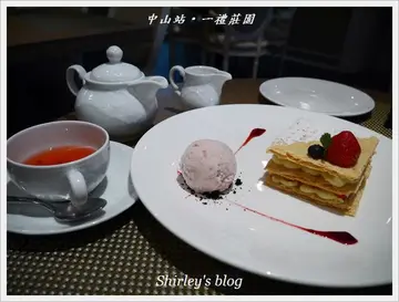 102/09/24中山站‧一禮莊園與大人閒逛南京商圈順勢走到了一禮莊園午茶獨棟建築在此巷弄裡很有特色一樓門口大片留白作為庭院一樓為門市烘焙麵與精緻糕點禮盒華麗水晶吊燈順著美麗弧形樓梯上樓新古典優雅簡約的用餐空間MENU午茶輕食及甜點美式咖啡100元 英式水果風味茶120元愛戀草莓千層派250元 搭配一球草莓冰淇淋雖然我不愛卡士達醬但這千層派還不錯吃至少我吃了沒覺膩口^^