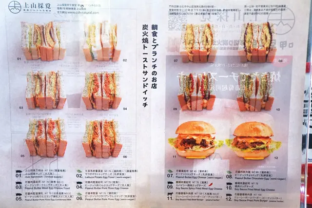 俗話說一日之計在於晨,所以早上有多麼地重要!!那更可以說早餐有多重要了~ (明明就是自己的歪理不是嘛哈哈...) 在台北中山靠近捷運中山國中站和松山機場,可是有間「台北十大高人氣早餐店」。這家早餐店食尚玩家也有來介紹,還有電視劇《只為你停留》也在這取景。 好啦~不賣關子了,這家店就在復興北路的街巷裡,它正是厚切三明治專賣店-上山採覓。 亮白的牆面,有著「上山採覓」大大俐落的黑色字體。外頭還掛個日式的布簾,店面根本就很好拍了呀~ 還有一隻可愛的小貓吊著吐司呢~ 店家的玻璃上貼著menu。其實大家要來吃前,可以先在官網或FB粉絲團先看好菜單,這樣就可以不用再猶豫該點什麼了。 另外這是店家飲品的menu。 店家用餐環境不算太大,但明亮且乾淨。簡單的座位,配上木作的裝潢,很有日式的味道。 前陣子店家才進行小裝修。一旁牆面則變成黑板的插畫。上面有整個復興北路周遭商圈的地圖,而且畫的好細緻呀~ 相信大家很多都是看了食尚玩家而慕名而來的吧! 點餐就在這個窗口排隊就對了~ 店內有85元低消,而且禁帶外食喔。 首先是我點的店家人氣招牌花醬肉鬆蛋煉乳 (85元)。 小鬍子很喜歡他們家的厚切吐司,吐司烤的外酥內軟,蛋口感軟綿,但是更讓我想不到就是那微鹹甜感的肉鬆搭配煉乳是如此的match;另外裡頭的花生醬更是不簡單,它的花生醬香濃不甜膩。 裡頭感覺都是偏向帶甜感食材,比例卻可以抓的這麼恰恰好,人氣招牌不愧是人氣招牌呀! 接著是我們三人點的飲品。最前面是花生鮮乳 (ピーナッツミルク/Peanut milk) (100元),中間是抹茶鮮乳 (抹茶ミルク/Matcha milk) (90元),後者是香蕉牛奶 (バナナミルク/Banana milk) (100元)。 它的飲品像香蕉牛奶跟花生牛奶都打得很有稠度,而且不算太甜,三杯飲品都很紮實,好喝。 老弟點的明太子鮪魚堡 (90元)。 竹炭色的黑麵包相當吸睛,不過吃起來是沒什麼味道的,不用擔心會有竹炭味啦。老弟說鮪魚的味道較明顯,吃不太出明太子的味道。整體上還OK。 最後是芝芝小姐選的花醬雪花牛肉堡 (130元)。 瞧這滿滿的雪花牛肉片根本是要溢出來了。 它的雪花牛肉堡味道很濃郁,花生醬依然出色,滿滿的雪花牛肉片吃起來是爽快,但吃到最後稍微鹹了些,但是整體上是不錯的。 最後,大家也不要忘了將吃完剩下的垃圾跟餐盤拿到門口旁的回收台整理好喔~ …查看更多
