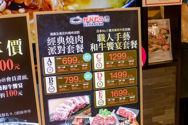 只要699元起一個人也能來吃的燒肉吃到飽《上村牧場》,我自己就吃過好幾次,位於台北車站2樓微風廣場,《上村牧場》一開店門口排隊就是排隊人潮,沒有訂位的隨便都要等上30分鐘以上,燒肉吃到飽方案從699元起經典派對燒肉到1299元日本薩摩牛A4和牛吃到飽通通都有,最酷的是竟然有像K書中心的單人座位區,《上村牧場》可以實現單人和牛燒烤吃到飽。|一個人也能吃的上村牧場微風北車店位置跟排隊方式在台灣只有一家店《上村牧場》,位於台北車站2樓的微風北車店,到台北車站上2樓就可以到了啊!交通很方便,《上村牧場》現在會直接給你號碼單,會告知你大概會等候多久,你還能透過手機掃號碼單上的QRcode就知道目前已經輪到幾號了,真的不用在現場等那麼久,然後你也可以透過電話訂位,當天平日大概等15分鐘就有座位了,老實說還蠻意外的快。|上村牧場燒肉吃到飽菜單價格上村牧場菜單有經典燒肉派對套餐、嚴選澳洲和牛套、職人手藝和牛響宴套餐三種方案與50分鐘、75分鐘與100分鐘三種時間組合成8個不同方案,主要是職人手藝和牛響宴套餐只有75分鐘與100分鐘兩個方案而已,最便宜的是經典燒肉派對套餐50分鐘只要599元,最貴就是日本A4和牛吃到飽100分鐘要價1599元。,肉品食材上面都有標名產地。經典燒肉派對套餐是基本的套燒肉食材,有70種食材,用的是美國牛肉;職人手藝和牛饗宴套餐主打薩摩牛A4日本和牛,反正就是和牛爽爽吃到飽,所有方案都有含飲料無限量供應, 另外也可以加價199元享有酒精類飲料喝到飽,現在加入LINE會員就可以折和牛套餐就是加100元,我會建議點1499的方案,再用會員去折100元,老實說很划算,會員也可以累積點數,我覺得還不錯。|像K書中心一個人也能吃的燒肉吃到飽上村牧場《上村牧場》用餐環境設計跟一蘭有一點像,其實應該是K書中心吧!總共有78席座位有,有一整排的單人獨享座位6個、2個人座位8個、4個人座位5個、6個人座位6個,所以你今天不管來多少人都有符合你的座位區,人少的時候像有些兩人的會安排到4人或單人的安排到2人做,但單人座真的有夠像K書中心的書桌,但真的也很適合一個人來吃的燒肉吃到飽。這單身一個人的座位還蠻寬敞的,還有隔板與其他人分開,座位下方可以放包包,竟然還有提供插座可充電,用餐時間很寶貴,最好不要滑手機。座位右上角是烤爐,左邊則是醬料跟飲用水,空間還算可以,一次最多只能點四盤,如果點太快來了八盤,位置就會比較擠一些,左下角有插座,因為都是用手機點餐怕手機沒電,都可以使用充電,桌面上擺放著各種醬料,有燒肉汁、檸檬汁、鹽、醬油包、山葵醬、辣椒醬,桌子下面還有一個小抽屜放著餐具,飲料機在走道那邊,要自己去倒有百事可樂。|推薦上村牧場日本和牛套餐 100分鐘 NT$1699元因為有折300元就直上日本和牛饗宴套餐 100分鐘 $1699+10%,含服務費才一千四百多元就能真正日本A4和牛燒烤吃到飽,爽啦!選定套餐方案後會給一個QRcode,用手機掃描後會連到官網點餐頁面,就可以用手機點餐,一個人一次是只有四盤,點完之後可以再點,續點沒有限時,點完餐後會用日本最新的送餐技術特急快車送到餐桌上方軌道,取完餐後記得按紅色的按鈕讓餐車返回,換烤網或清潔就按一下服務鈴請店員協助,一開始還想說可不可以把空盤放在車上送回去,哈哈!薩摩牛特選霜降和牛/薩摩牛精選旨味和牛來了!正港日本和牛吃到飽來了,外面一堆和牛吃到飽大多都是用澳洲和牛,使用真日本和牛的少之又少,為什麼?原因很簡單就是貴!不符合成本啊!然後上村牧場是採用鹿兒島產的黑毛和牛,而且是用薩摩牛A4和牛,每頭牛都有生產履歷,真的是不隨隨便便的,你會問說為什麼不用等級比較高的A5和牛,第一成本更高,第二那個油多到你吃不了幾片啦!上村牧場提供的日本和牛是薩摩牛A4和牛,分成特選霜降和牛與精選旨味和牛兩個部位的肉品,基本上兩款的油花分布都很均勻,而且肉片都有一定厚度,霜降和牛油花較多,口感吃起來比較柔軟,時間不用烤太久就會有入口即化的口感,吃起來的油脂相當的豐厚,另一款旨味和牛吃起口感比較扎實,油感比較沒有那麼的重,一樣也是很軟嫩。不管是特選霜降和牛或精選旨味和牛,吃起來真的都很爽,然後偶爾穿插一下伊比利豬或厚切牛舌,老實說會比較能吃得多,要不然和牛的味道太過豐富,吃多會膩一定會想點其他的,可是有些食材是真的不太行,建議也可以點生菜,來夾肉吃來會比較清爽一些,再來就點泡菜也是可以轉換口味。薩摩牛壽喜五花薩摩牛壽喜五花這個也可以點,也是很值得吃的,原則上你就點要附蛋液,然後用涮燒的方式來烤,之前有去吃過大股燒肉就有涮燒牛肉,原則上就是切薄一點牛肉用涮的方式去烤,讓它有一點熟度就可以,看薩摩牛壽喜五花的油花比例就超美的,然後涮起來帶有一點粉嫩的色澤,口感會有一點脆度,沾著蛋液吃會更划順,算是上村牧場必點食材之一。蒜味橫膈膜橫膈膜算是牛肉內臟,對於一般燒烤店來說算是夢幻逸品,不是用日本和牛的橫膈膜,是用美國牛,橫膈膜本身味道就會比較重一些,點蒜味來烤味道會比較壓,要烤到外面熟度有出來,裡面還是有嫩度,吃起來算是很有嚼勁,然後味道很重,但不是那種很腥的味道,老實說喜歡吃口感的可以點來吃看看,基本上也是在和牛這個等級價位才點得到。原味牛舌/極厚牛舌牛舌的部份不是用日