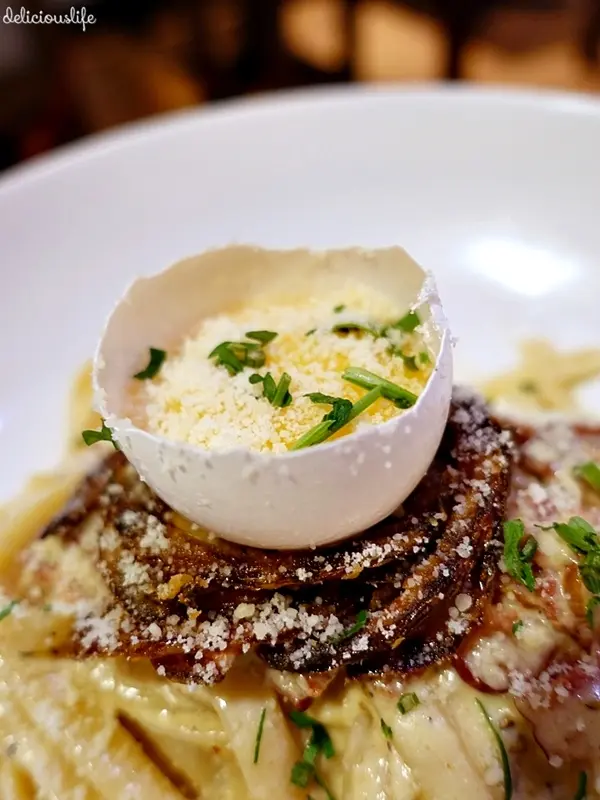 天母新光三越對面的星巴克後方在八月中時開了間新的餐廳原本這個位置是怡客咖啡,附近爺爺奶奶每天晨運時常在這邊吃早餐後來因為租約跟老闆娘私人原因歇業,沒多久便看見掛上招牌開始裝修「上青攬月」本營業點在大葉高島屋內,雖沒吃過也帶著幾分期待 因應即將到來的萬聖節,內部做了小小的佈置「上青攬月」使用illy的咖啡豆、台灣茶、花蓮原住民種植的無汙染米以及進口的橄欖油,大部分都陳列在店內架上,無詢問是否有販售 戶外座、沙發座、高腳椅靠窗座,另有一排靠牆的座位靠牆座位的桌距很近,桌與桌距離大約30公分而已連走進去都有些困難,這點覺得是比較大的缺點 餐點類型有義大利麵、燉飯、排餐、早午餐等等,選擇性很多主餐單價介於250-800之間,加180元可升級為套餐包含開胃菜、麵包、沙拉、濃湯和甜點,加點飲料可折扣40元這週配合萬聖節有特別推出幾種餐點搭配優惠套餐價只要+100元不過就少了開胃菜和甜點的部分噢! ▼萬聖節套餐加價 100元生菜沙拉、麵包和今日濃湯(南瓜湯)沙拉醬汁有蜂蜜芥末和白酒油醋,選擇了後者湯品小小一杯,質地濃稠味道不錯,生菜亦很鮮脆 ▼香蒜奶油雞肉義大利麵 單點價260元每種口味義大利麵搭配的麵條不同,我喜歡Fettuccine寬厚有嚼勁的口感醬汁收的很到位,黏呼呼的扒在麵條上,有著淡淡奶香和蒜味雞肉量不少,但頗乾柴(是我愛的那種乾巴巴口感XD)而且雞肉沒有入味,就是乾乾無味的雞肉塊,建議不喜者跳過 ▼上青攬月義大利麵 單點價280元就是一般吃到的Carbonara,奶油培根蛋黃義大利麵但這名字取的還真好,除了和店名有相呼應作用外把蛋黃放在一半的蛋殼中擺在麵條頂端做裝飾,這創意我愛好像真的要上了青天才能抱到的月亮一樣!連隔壁桌都驚奇貌的轉頭問我:請問你們點的這是什麼呀? 這是我那93歲的爺爺點的,直說味道不錯不錯麵條是帶有點硬度的,他老人家也吃得津津有味只不過剛好坐在冷氣孔下方,涼的快,他嘟囔了幾句XD ▼冷泡清香四季春 120元非常順口,極清爽且甘甜不澀 「上青攬月」的店員和老闆、老闆娘服務態度都非常的客氣有禮貌只不過剛踏入店時大約傻站了20秒,都沒人前來招呼每個都很專注在做自己的事情,感覺上注意力跟反應比較不機靈但入座後因為他們的優秀態度也就忘了這一開始的小插曲店家提供免費Wifi,收取10%服務費用,可刷卡,目前好像沒有限制用餐時間爺爺和店家詢問早上怎麼沒有做早餐,老闆娘說其實已經在計畫囉!【上青攬月 Moonstruck】地 址:台北市士林區天母東路69巷1號電 話:(02)2876-7558營業時間:11:00-22:00…查看更多