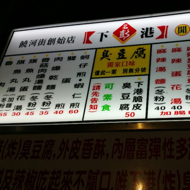 下港名彭臭豆腐 (台北) 網址: https://s.openrice.com/cHRSm02vbO100 地址: 台北松山區饒河街189號 後段 電話: +886 +886937086395