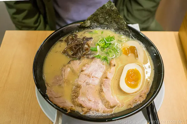 上次吃鷹流拉麵時就看到了世田谷拉麵在對面開了分店~很快滴,有著很重症頭拉麵魂的老公就約我來吃了~店面還滿寬廣的~大紅色的燈籠高高掛起~戶外還用等候用餐區~有幾個座位能作!算是小小貼心~日本拉麵先生的照片看起來有一股凜然正氣~不由得想讓我肅然起敬(舉手敬禮)MEUN上的叉燒照片看起來好厚實喔~流口水中我愛厚叉燒阿~~~~~ 店內空間還満寬廣的~只是拉麵店有普遍的通病,就是二人桌都好小一個喔二個人點上二碗拉麵再擺上一碟小菜兒~就快要滿出來了~隔壁桌二個人用餐真的多點幾份餐點就動用到四人桌了 MEUN如上~除了單點之外還有加購套餐的組合母親月滿300元另外加贈的辣味豆腐(我忘了正確的贈送期間了)這豆腐真的又麻又辣,真的很辣!才吃一口我們的鼻頭都冒汗的難怪沒幾桌客人有辦法完食不過後來我們發現把上頭的肉醬加入拉麵中,更增添一股麻辣的香氣因為拉麵的湯底讓這一股辣味變得更溫順了些但還是不要加過量喔~白豚拉麵完整的整顆糖心蛋,三大片叉燒肉,木耳絲跟蔥花雖然叉燒肉還滿大一片的~但厚度跟MEUN比起來是不是有差滿多的阿(哭~)好失落阿~我的厚叉燒咧!!!!!!世田谷拉麵的叉燒是有咬勁的~不走入口即化的路線(口感喜好隨個人)滑嫩的糖心蛋還滿好吃的麵體的軟硬程度適中~而且份量也不少~黑豚拉麵黑豚跟白豚差別的不是黑豬跟白豬啦~而是豚骨拉麵多增加了一味黑麻油其他的配料一模模一樣樣~在結帳前我看到這個收據還以為不用收服務費原來~不是唷!!!!服務費是在櫃台結帳時再加入10%麵體的份量不少,但單價不算是親民…查看更多