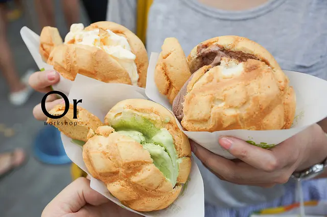 世界第二好吃的現烤冰淇淋菠蘿麵包 終於來台灣了!!!8/13 正式開幕之前,有機會可以先嚐到這日本來的超人氣菠蘿麵包太幸運了>///<.至於為什麼叫做世界第二好吃,而不是世界第一好吃呢?創始人三上史朗表示,當初教他做菠蘿麵包的小山恭平師傅做的麵包,在他心中是永遠的第一名,為了表達對師傅的敬意,所以才取作「世界第二好吃的現烤冰淇淋菠蘿麵包」。菠蘿餅乾 $80現烤的冰淇淋菠蘿上面放的就是這個用菠蘿烤成的餅乾。冰淇淋菠蘿麵包怎麼吃最美味小步驟:1.拿到冰淇淋菠蘿麵包,馬上大口咬下去,衣服弄髒也不要擔心。2.一旁有吸管,可以先用吸管當成湯匙舀冰淇淋起來吃。3.在吃完之前,絕對不要從紙袋拿出來,避免冰淇淋融化滴出。4.最後,把融化的冰淇淋,集中在紙袋底部,用吸管喝完它。世界第二好吃的現烤冰淇淋菠蘿麵包 台灣店的菠蘿麵包麵糰由日本總部直接提供,並使用與日本一樣的麵糰發酵法、時間跟機器,就連冰淇淋也跟日本一樣使用明治冰淇淋,確保品質美味一致!看著一顆顆菠蘿越來越膨,帶著金黃色澤完美出爐!!光看就讓人口水流不停了呀!!! 熱騰騰剛出爐的菠蘿麵包,立馬夾入一杓一杓的冰淇淋,再加上菠蘿麵包烤成的餅乾,美味的冰淇淋菠蘿麵包就完成,大聲公喊著號碼,拿到時看著還真有點感動XD.世界第二好吃的現烤冰淇淋菠蘿麵包目前引進三種口味,分別是香草/巧克力/抹茶。香草 $120現烤熱騰騰超燙手的菠蘿,再配上冰冰涼涼的冰淇淋,冷熱交替冰火雙重,美味的讓人眼睛發亮,大口大口的咬下超級過癮,酥而鬆軟的菠蘿太讓人驚艷!!完全不油膩如此的酥香,夾餡的明治冰淇淋甜度低搭的完美,怪不得姊妹在沖繩吃過一次念念不忘,這真的太好吃!!不用想了!這跟台灣的菠蘿根本不是同等級的XD.又膨又鬆,跟冰淇淋是絕配~~不愧為日本金澤排隊名店,我實在好喜歡啊!!巧克力 $120濃郁的巧克力是我的最愛,微甜香濃而不膩,喔~這冰淇淋菠蘿實在好好吃,說世界第二好吃真的謙虛了!!!抹茶 $120和姊妹一起享用,我覺得就是世界第一好吃的滋味!看到你們滿足的表情覺得很幸福>///<. 好吃的甜點就是要跟姊妹一起分享~…查看更多