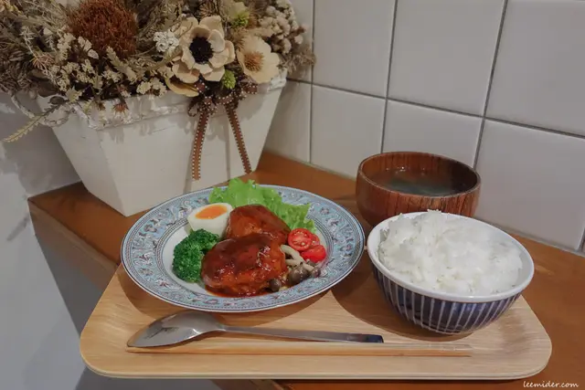 Kitchen island 中島由原本提供便當的餐車,轉變成現今的清新日式食堂風格。只有平日營業,每天固定提供兩種餐點,一週之內會供應到五種不同的餐點。艾方妮特地選了不同的日子到訪,將Kitchen island 中島的五種餐點全制霸。這包括了鮭魚四色飯、三十號咖哩、紅酒燉牛肉、和風漢堡排及牛肉壽喜燒。中島位於SOGO百貨復興館的後方,由於位處巧妙的位置,先將路程詳細說明一下。搭乘捷運的話,由忠孝復興站2號出口出來後左轉,到第一個路口再左轉就可抵達。門口沒有任何招牌,有的只是一個白色的布招,及純白的門框。一共去了Kitchen island 中島三次,幾乎中午用餐時間都是這樣的狀況。站著的不是預約或是現場外帶的,就是等著要外送的快遞人員。有位置坐的,就乖乖地坐好,因為接著就有許多內用的排隊人潮了XDD這是Kitchen island 中島的店狗-管管,非常地活潑好動。若客人進出忘了關門,他就像脫疆的野馬不知跑哪去?上次有位穿著白襯衫打領帶的上班族很有愛地追出去,覺得這客人也太可愛了!這是有一天遇到鄰桌客人的博美,是艾方妮見過最淑女的博美了!這天管管見到有如公主的她,更是無法控制地親她,後來只好被綁起來了XDD感謝友人 陪我去了兩次,如此就可一次吃到當天推出的餐點。Kitchen island 中島很用心的地方是,每種餐點配的湯品都不盡相同。三十號咖哩 $130附的湯品是洋蔥海帶湯,清爽的湯頭與咖哩飯十分的契合。在店家的部落格中發現,其實他們推出的正式餐點都會事先經過試吃的過程。由客人或親友試吃的結果修正,也就是說他們的餐點都是精心的設計及調製的結果。至於這餐點取名為三十號也是有些無厘頭,但餐點好吃比名字來得重要,是吧!這款三十號咖哩是屬乾咖哩的呈現,類似北印度、巴基斯坦的keema curry,也就是用絞肉所烹煮的肉醬咖哩,然後上面有半個溏心蛋,搭配幾朵綠花椰。吃了Kitchen island 中島的白飯有些許不一樣,原來是特製的奶油月桂飯。其實他們從洗米就很講究細節,煮飯時依比例放入奶油及月桂葉去煮。因此看來與一般白飯無異,但入口有淡淡的奶油香氣,月桂葉的味道倒是不明顯。將咖哩的香氣全濃縮在絞肉中,辛香帶微辣,咖哩味濃郁卻有一番清爽。雖不偌一般湯湯水水的咖哩,但味道卻很厚實但又不膩口,令人一口接一口吃不停。牛肉壽喜燒 $150奶油月桂飯一大碗,看起來就很香Q的模樣,而湯品附的是味噌海帶湯。就像一般去吃壽喜燒鍋物常見的食材,而每樣食材都吸飽了壽喜燒的醬汁。洋蔥、青菜、豆腐、金針菇及牛肉片鹹甜滋味很美妙,友人說再來個生蛋黃就完美了。紅酒燉牛肉 $140附上的是玉米濃湯,香甜的玉米濃湯,與紅酒牛肉搭來有種吃西餐(洋食)的感覺。採冷藏牛肉製成,入口有淡淡紅酒香的大人味,肉質相當地軟嫩易嚼。本來不愛胡蘿蔔的友人,竟然全部吃光光?可見這胡蘿蔔燉得很厲害!鮭魚四色飯 $150這天搭配的是味噌湯,再看精心的擺盤,有別於紅酒牛肉,這套就是日式風味。這四色飯是由豬絞肉、鮭魚鬆、蛋鬆及四季豆末所組成。隨著夏日的到來,食慾也隨之受到影響。但見到這四色飯心情整個就好起來了呢!絞肉的瘦肉比例偏高,但入口卻不乾柴;鮭魚鬆帶著鹹香。採用石安牧場的新鮮雞蛋,以慢火拌炒出來的”手很酸”蛋鬆,香鬆的蛋香很美味!另外艾方妮對於這種細粒的四季豆接受度比長條形來得高,單吃混著吃都好好吃!和風漢堡排 $150/青菜 $30對於前幾道餐點青菜量較不足的部份,這天就加價選了青菜來補足纖維質。這天的湯品是薑絲海帶湯,對於味道較重的漢堡排來說也是恰如其份。這漢堡排的擺盤顏色太繽紛了啦!除了兩大塊漢堡排外,還有綠花椰、蕃茄、菇類及溏心蛋。賣相真是令人食指大動呢!自家黃金比例的牛豬混和漢堡排,是採手工拍打出來的,另外淋以蕃茄為基底的醬汁。漢堡排口感比較乾鬆一些,搭配醬汁是蠻不錯的,但跟艾方妮喜愛紮實口感不太一樣。倒是醬汁雖味道重了些,但正好把清淡的燙青菜拿來沾食著吃,還蠻不錯的呢!也不是每天都能到Kitchen island 中島用餐,因此前後花了幾個星期才餐點全制霸。若依艾方妮個人的口味喜好,最喜愛鮭魚四色飯及三十號咖哩飯。另外下次想找個下午非用餐時間再訪,如此可以享有清新的空間一定更愜意!…ดูเพิ่มเติม