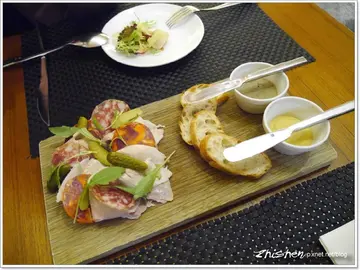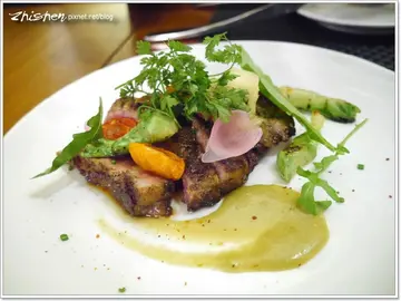 以法國當地小酒館為概念所打造出來的【C'est la vie BISTRO 五味瓶】,成了台北米其林公布後魯第二間造訪的餐廳,因為店名特別,魯還特別上網查下資料,也恰巧看到了美食家姚大哥的撰文增廣見聞。「C'est la vie」是法文,意思是「這就是人生」,人生不外乎酸甜苦辣鹹,五味亦豐富了我們的人生,店家以此為命名,意涵深遠。【C'est la vie BISTRO 五味瓶】服務不錯,出菜也是有條有理,料理水平優質是主要,非固定菜單的「特殊料理」或許也能讓你大開眼界,所以雖然價格略為高貴,想品嚐褲帶要勒緊一點,不過魯覺得以美味水平來說是值得的,萬中選一的米其林餐盤推薦實至名歸ΩMENU點菜時服務人員說了幾道菜單上沒有的特殊料理,所以魯也隨之異動了看了一會才想好的菜單XDΩ自製火腿&豬肉抹醬、義式臘腸與麵包 380NTD自製火腿與義式薩拉米臘腸口感、風味應屬一般,比較吸引我的是右上那小碟很不起眼的豬肉抹醬(上方褐色的)。其濃郁的香氣,抹在略為脆硬的麵包片上頭,入口後抹醬因溫度在嘴裏化開,溫和的肉香味充滿嘴鼻,有種不是很強烈但又無法令人無視的吸引力。Ω炙燒市場海鮮佐地中海式白酒油醋 380NTD炙燒海鮮裏有有干貝、蝦、花枝…等,其中香氣以干貝最優,再來是花枝。白酒油醋中有加入醃漬鯷魚,酸爽酒香中還有鯷魚的特殊鹹鮮韻味,調味清爽又不失層次,除了賦予食蔬風味,也更能襯出海鮮的鮮美及甘甜。Ω酥炸蛙腿與秋季蕃茄 450NTD炸蛙腿外皮酥脆,腿肉滑嫩溼潤,蕃茄醬汁帶上了濃郁香氣及溫和酸香,亦讓蛙腿更加溫潤順口。Ω白花椰菜燉飯與碳烤九孔鮑 420NTD燉飯一上桌,便已聞到濃郁奶香。Ω煸炒過的食蔬簡單以鹽、胡椒調味,略帶香氣,襯色兼提味。Ω碳烤九孔鮑略帶烤香,軟彈嫩口,與燉飯的濃郁香氣合成一氣。鮑魚雖美,這白花椰燉飯才是主角,義大利米米粒完整,米心仍保有軟Q嚼勁,口感不差。燉飯本身的濃稠感也是恰到好處,風味香濃醇厚而不膩口,每一口都是鮮香,這是魯第一次品嚐白花椰菜燉飯,印象相當優。Ω嫩煎伊比利豬佐葡萄橄欖泥 890NTD伊比利豬熟度恰到好處,表皮也有不錯的盤煎香氣,細緻的柔嫩口感挾帶著輕薄高雅的油香感及肉味兒,不似牛肉走的是重油香重肉味,但絲毫不遜色。Ω伊比利豬搭配的葡萄橄欖泥有著微微果香及橄欖香氣,溫醇的香濃,與伊比利豬細緻高雅十分契合。Ω看一下這熟度和粉紅色澤,實在迷人。Ω法國薩索雞捲佐花鵰酒胡蘿蔔泥 680NTD從服務員這裏提到這菜單上沒有的品項,來自法國的薩索雞,魯的眼睛火光一閃,即使是調理過的雞卷,人還是一樣就這麼被勾走了Orz薩索雞卷白肉有輕薄鮮香,咀嚼起來的軟彈口感又略不同台灣雞,口感還不錯。外緣的雞皮略為厚實,不過煎烤後除了帶上微微韌硬的薄皮表面,油香足但沒有油膩感,也讓雞肉除了自身肉鮮,又更加有風味。Ω薩索雞搭配的醬汁微甜、帶著花雕酒香,和細緻滑潤胡蘿蔔泥,與薩索雞溫和的油香風味十分合拍。Ω嫩煎美國肋眼牛排10oz 1180NTD吃著吃著就吃開了,這肋眼是最後要上點甜前才加點的,等待時間也有比預期的來得長些,不知是否與舒肥有關。肋眼濃郁肉香及咀嚼後釋出的鮮美不會陌生,但不得不說這肋眼不只是口感優、肉味及鮮甜在感受度上算是相當高,表面的盤煎帶上的焦香感稍嫌略薄,本來只是要減少腸胃空間,但沒想到這牛排的鮮美令人眼睛為之一亮,這個加點粉不錯Ω舒芙蕾 380NTD舒芙蕾現點現作,需要一定時間,服務員也會和您確認開始準備導間,以免客人久候。舒芙蕾稍微迷你些,不過真是超級鬆軟的,而且香氣很棒,口感及風味應該是魯吃過少少裏的前三,不過開動後立馬就「消漲」了,所以請把握最佳賞味時間品嚐。…查看更多