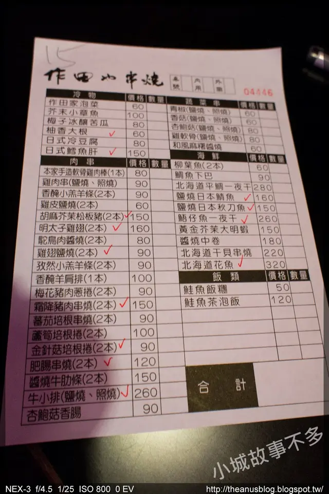 作田串燒 (台北) 網址: https://s.openrice.com/cHRSm02qyz000 地址: 台北大安區忠孝東路四段223巷63號 電話: +886 02-27525279